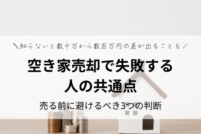良かれと思った行動が空き家売却の失敗原因に。リフォーム、放置、相場確認など、売る前に判断を誤りやすい3つの行動を、不動産実務の視点から整理します。